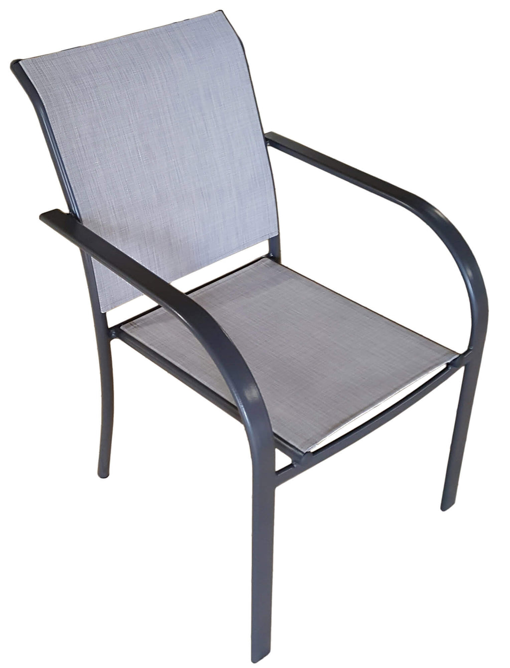 - Sitz und Rückenlehne aus hellgrauem Textilene