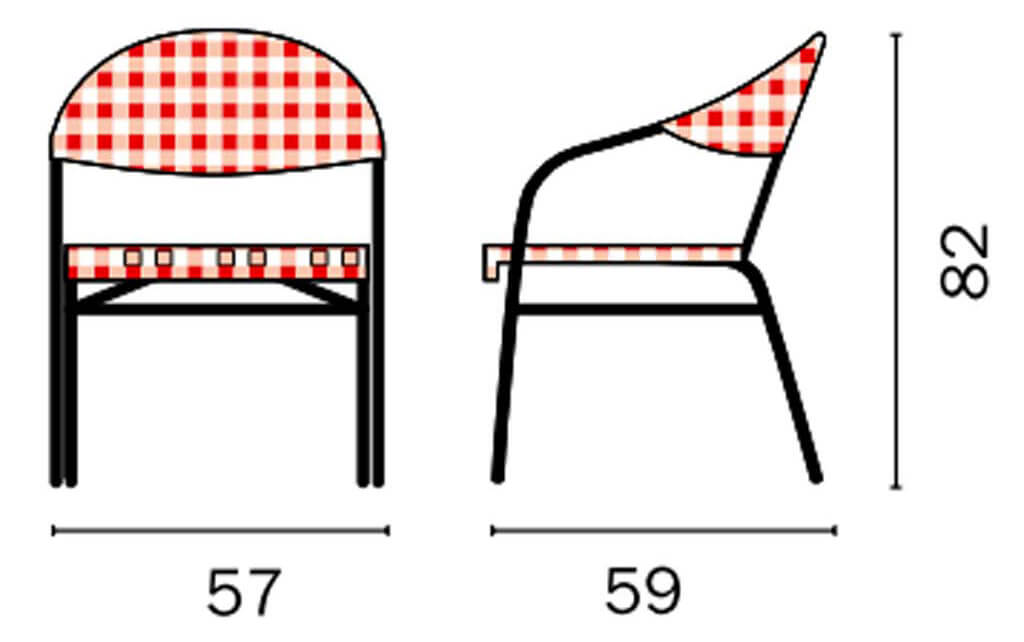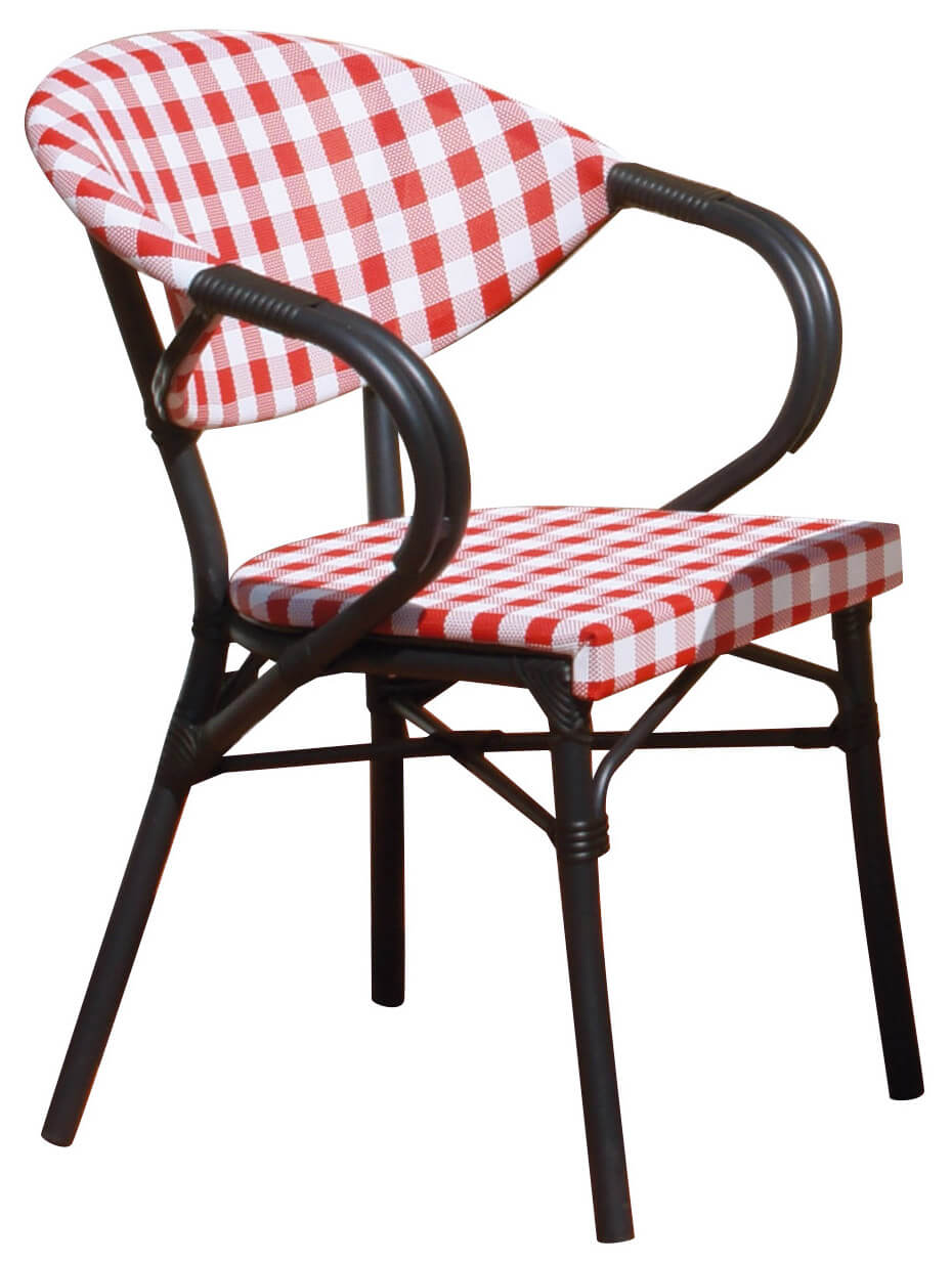- Rückenlehne und Sitzfläche aus Textilene mit rotem und weißem Schottenmuster