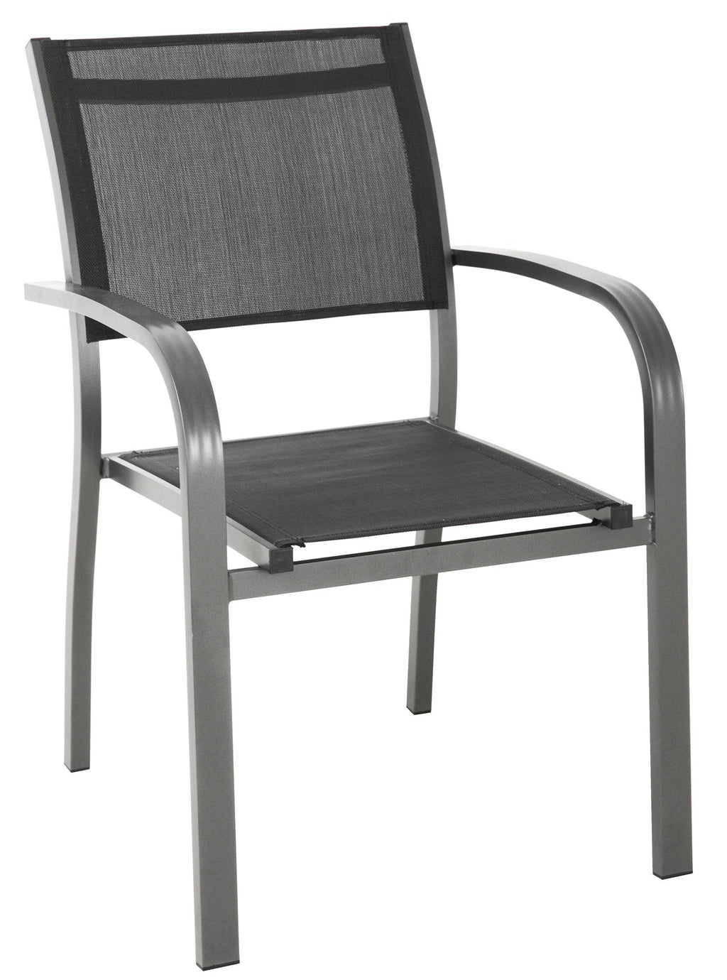 Gartenstuhl aus Aluminium mit Armlehnen in Anthrazitgrau. Stapelbar.