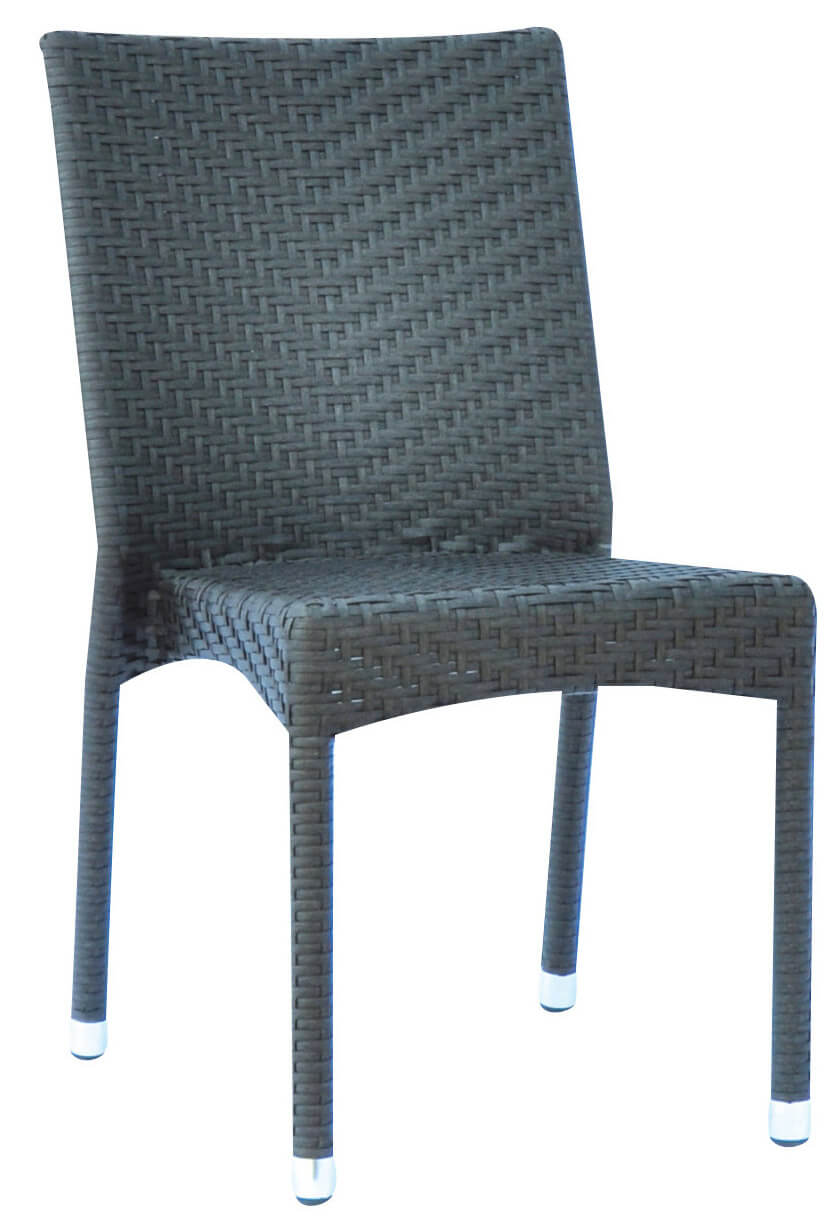 Gartenstuhl aus Aluminium und wengèfarbenem Geflecht. Stapelbar.