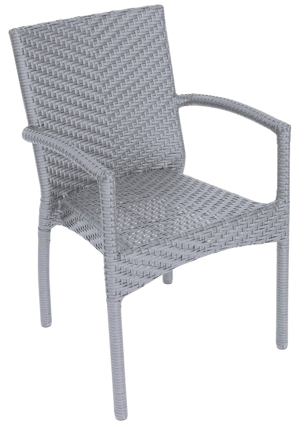 Gartenstuhl aus Aluminium und gebürstetem Geflecht in der Farbe Havanna. Stapelbar.