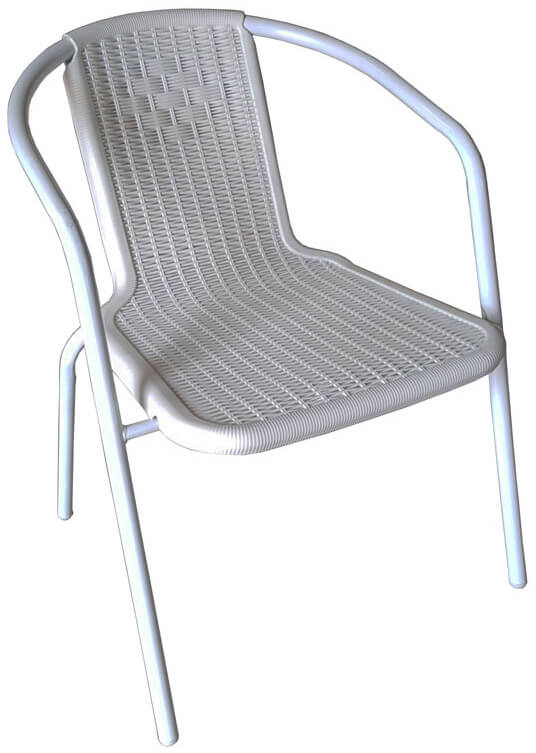 - Sitz und Rückenlehne aus weißem Kunststoff