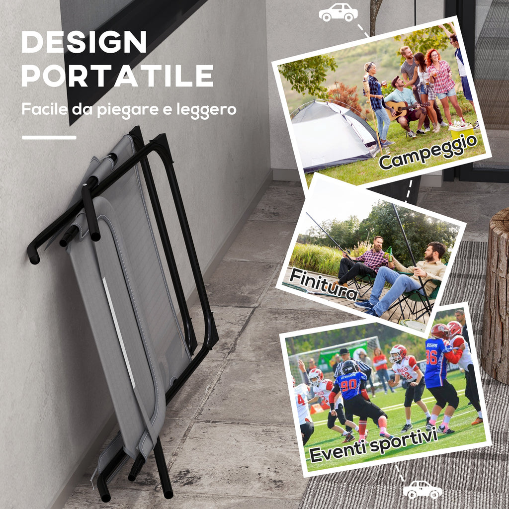 Sedia da Giardino Pieghevole e Reclinabile su 4 Livelli 69x91x96 cm in Acciaio e Poliestere Nera Grigia