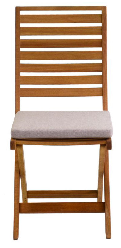 Klappstuhl aus Eukalyptusholz mit Kissen.