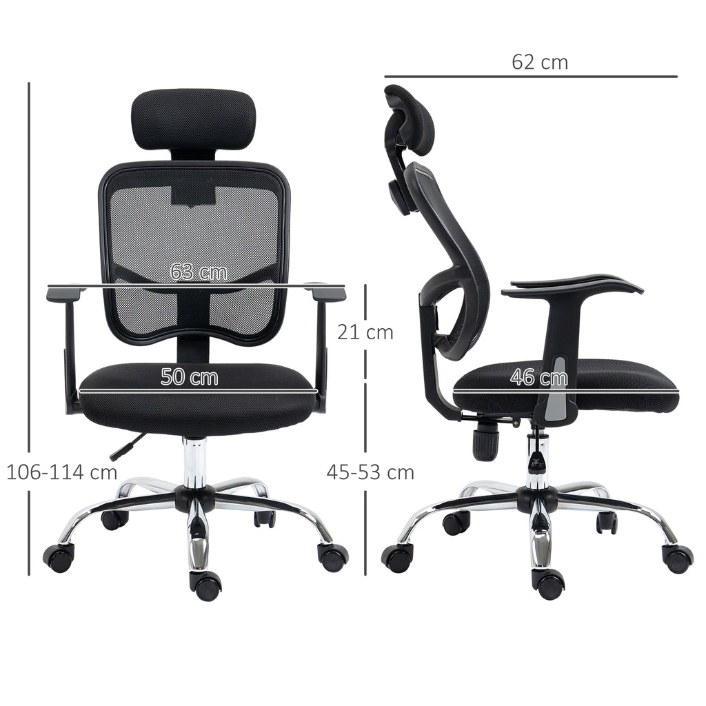 Sedia da Ufficio Ergonomica con Poggiatesta 63x62x106-114 cm in Poliestere e Acciaio Nero