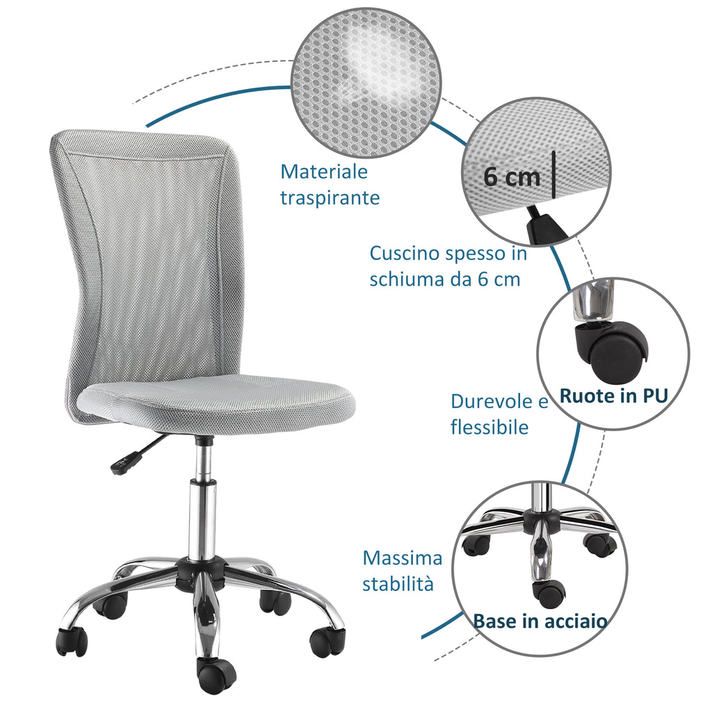 • DESIGN COMPATTO: Sedia da ufficio compatta perfetta per spazi piccoli. Il design senza braccioli che ti permette di riporla completamente sotto alla scrivania per risparmiare spazio