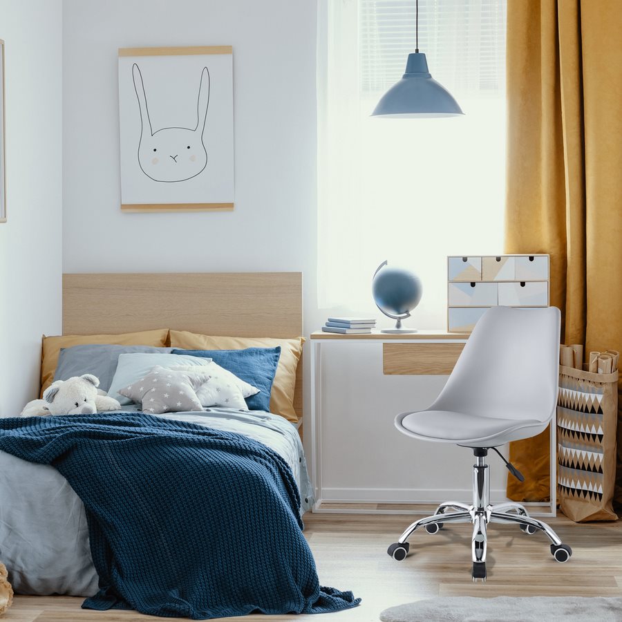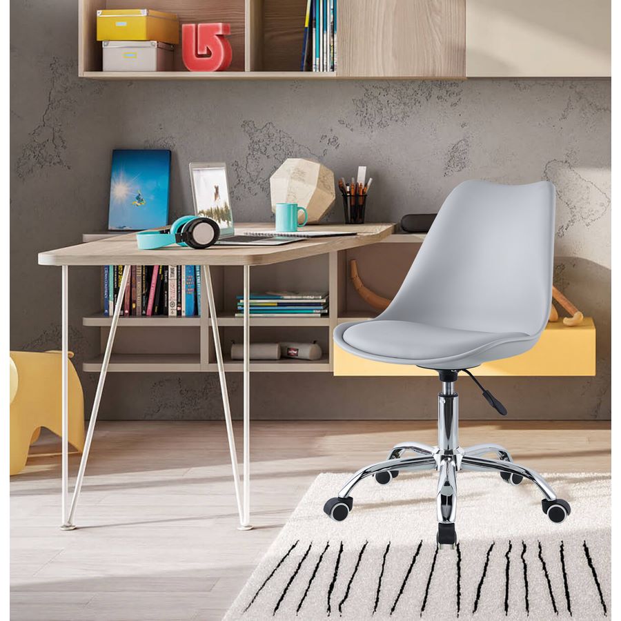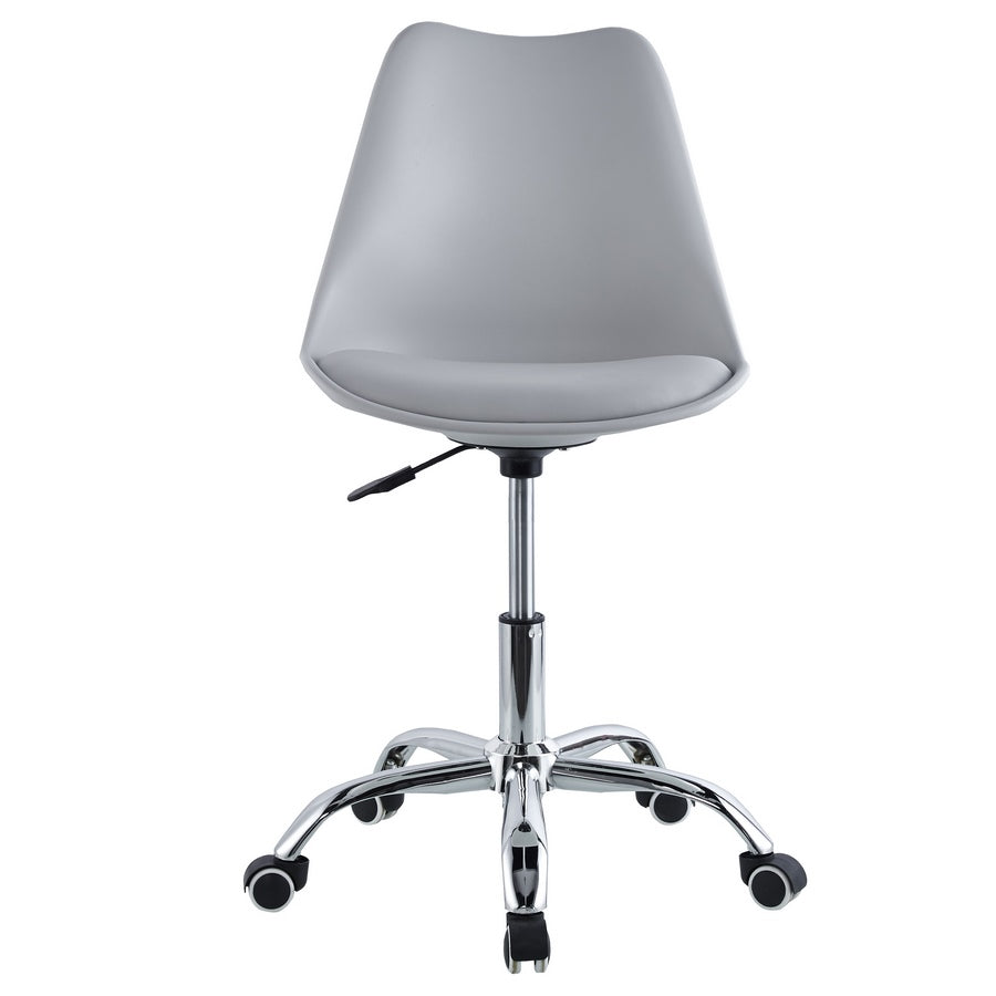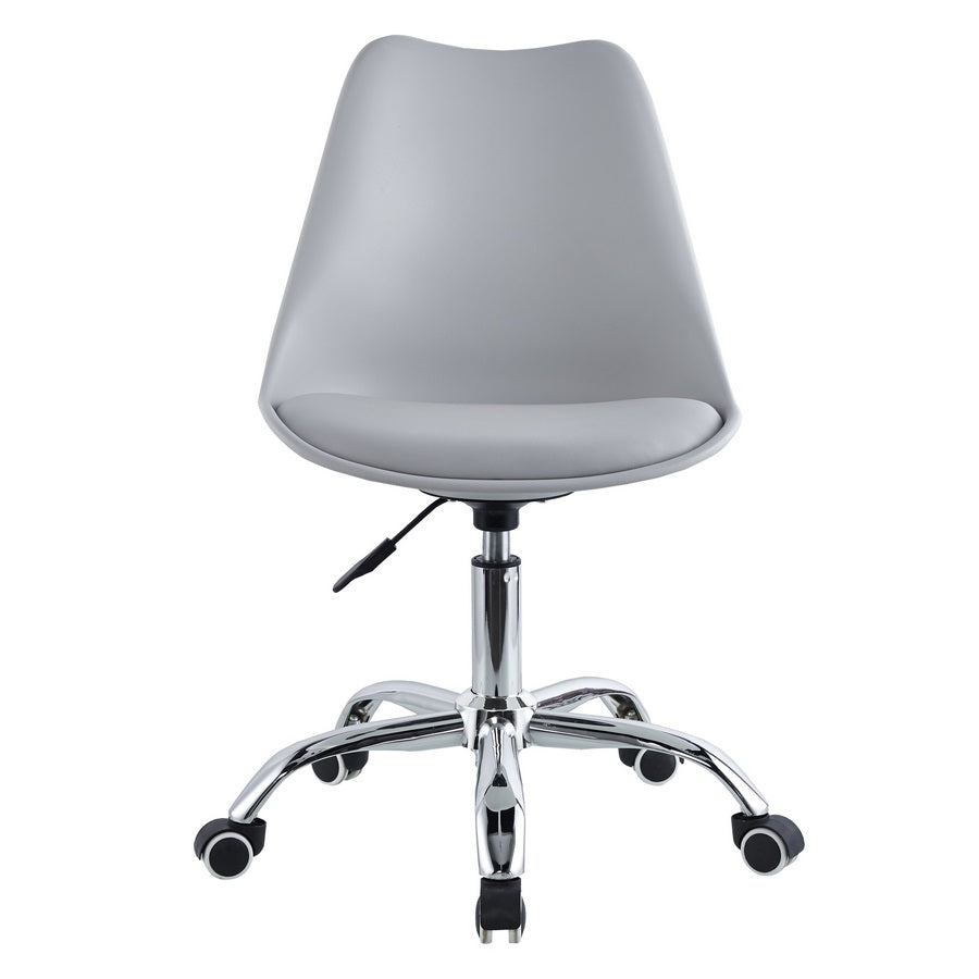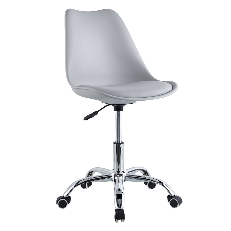 May: l'imperdibile sedia da scrivania per il tuo ufficio! Una sedia ufficio ergonomica dal design moderno con gambe in acciaio cromato e un'altezza regolabile tramite pistone a gas. Grazie alle sue forme e al suo stile questa sedia da scrivania grigia è estremamente versatile e perfetta per essere utilizzata in più ambienti; che siano lavorativi o privati.