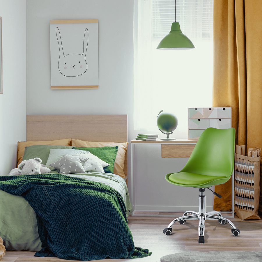 - Sedia per ufficio girevole verde con cuscino in similpelle