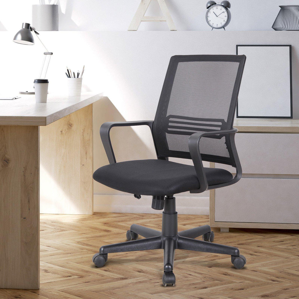 Die zentrale Rückenlehne mit Armlehnen und der schwammgepolsterte Sitz machen diesen Bürostuhl den ganzen Tag über bequem und eignen sich für viele Arbeits- oder Lernstunden.