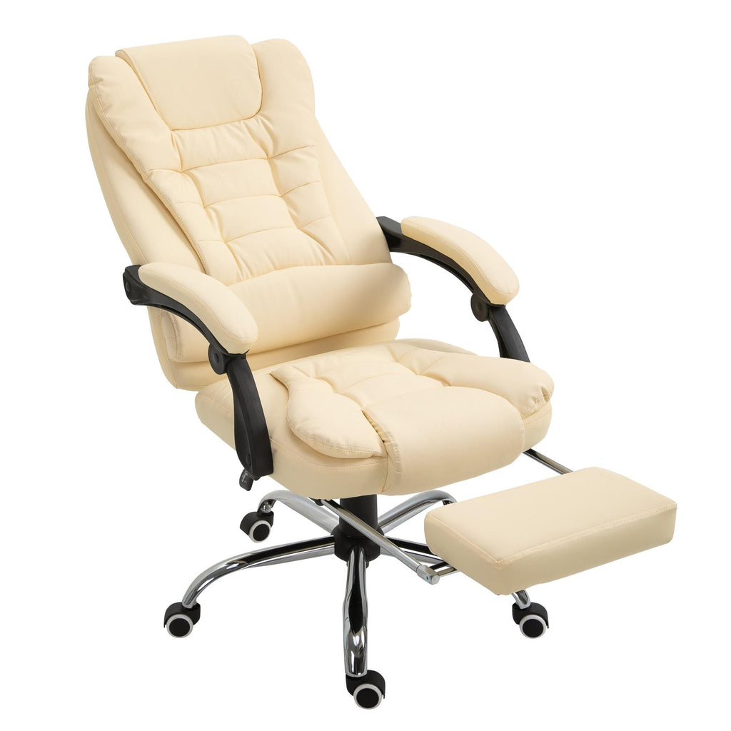 Genießen Sie den ultimativen Komfort mit diesem Chef-Desktop-Computerstuhl mit einziehbarer Fußstütze von . Es ermöglicht Ihnen, sich wohl zu fühlen und produktiv zu bleiben, um das Beste aus beiden Welten zu genießen. Mit einer um 90-145 Grad verstellbaren Rückenlehne, einer 360-Grad-Schwenkfunktion, einer verstellbaren Sitz- und Armlehnenhöhe und einem soliden Metallsockel mit leichtgängigen Rädern bietet dieser Stuhl alles, was Sie brauchen, um bequem und produktiv zu bleiben. Dieser Bürostuhl kann bis zu 264 lbs tragen. Dank seiner hochwertigen Materialien und seiner ergonomischen Struktur hilft es, eine korrekte und bequeme Haltung für diejenigen beizubehalten, die mehrere Stunden am Schreibtisch sitzen müssen. Dieser vielseitige ergonomische Gaming-Stuhl verfügt über eine Fußstütze, die ausgezogen werden kann, um Ihre Beine zu entspannen, oder vollständig eingefahren werden kann, um zu arbeiten, zu spielen oder zu lernen. Lehnen Sie sich zurück und entspannen Sie sich wie ein Chef mit Stil mit diesem modern gestalteten Büromöbel mit ergonomischem Fußhocker.