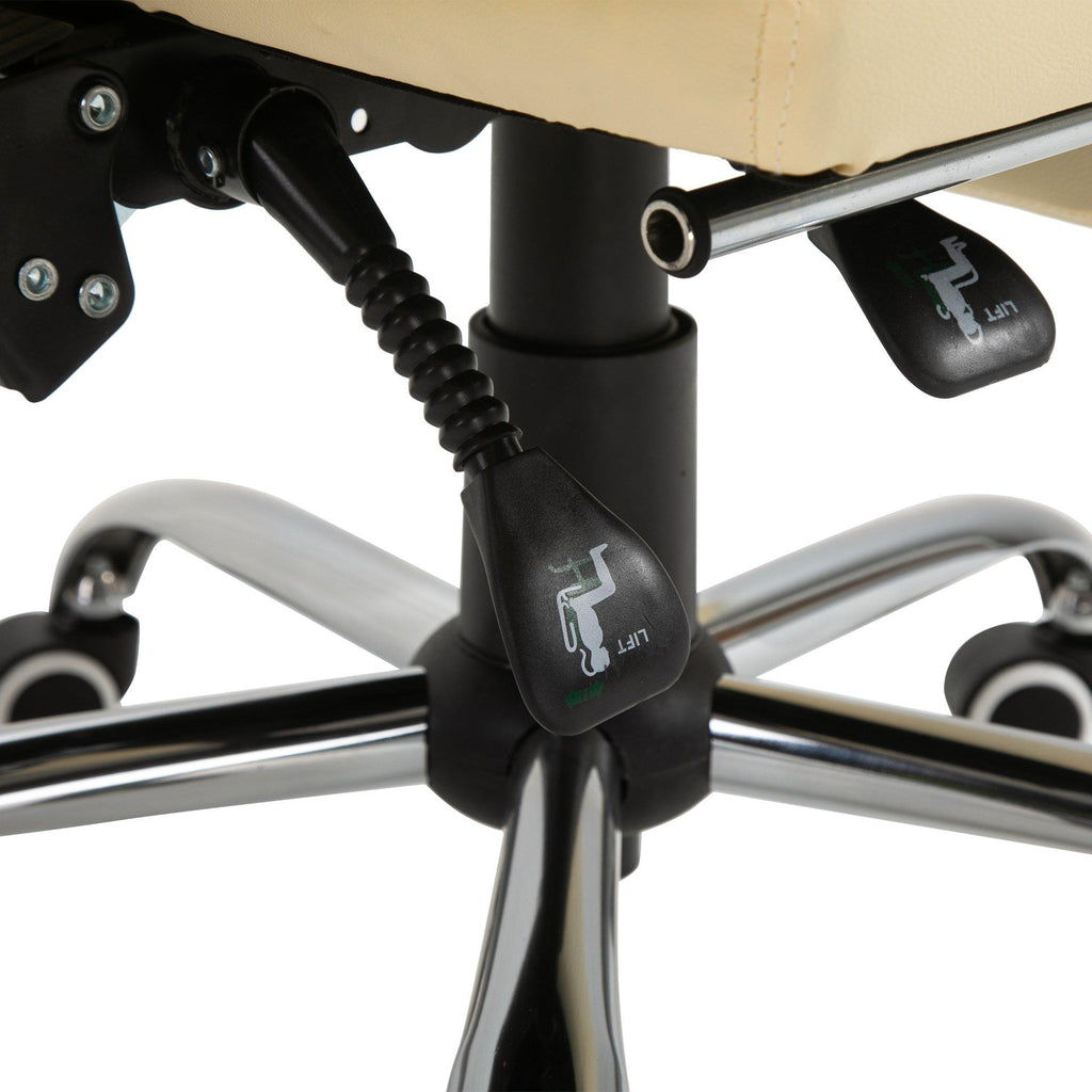 - Die einziehbare Fußstütze kann bei Nichtgebrauch unter dem Stuhl versteckt werden