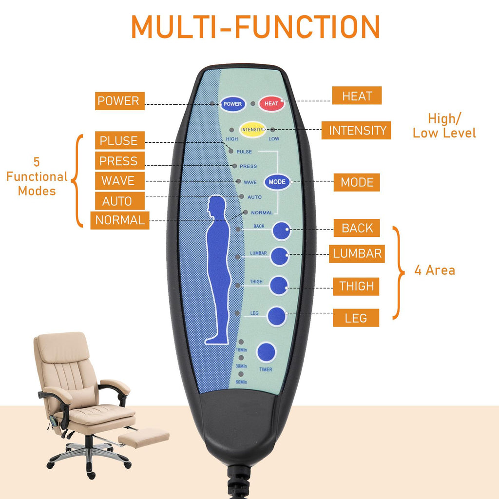 Presidential Massage Bürostuhl mit Heizung aus Kunstleder 67x69x106-116 cm Beige