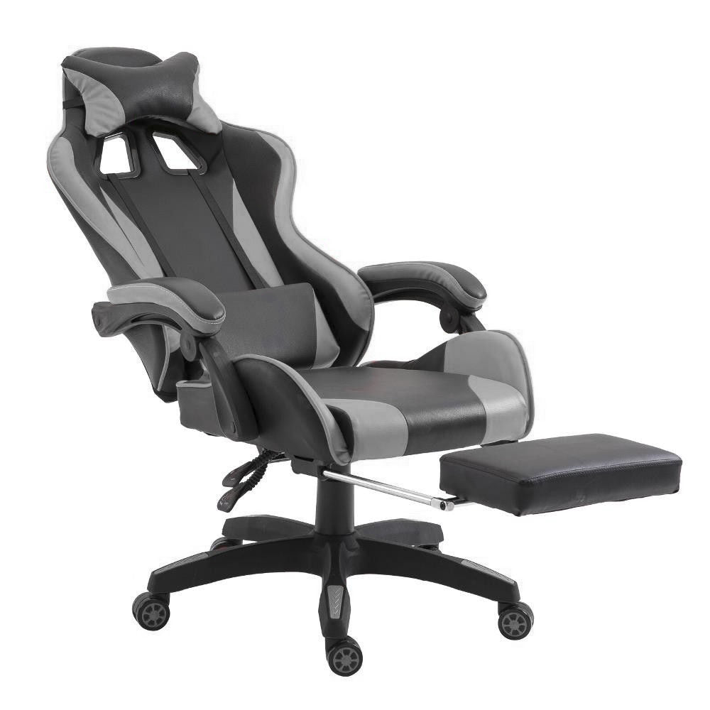 Gaming-Stuhl mit Fußstütze aus grauem Kunstleder