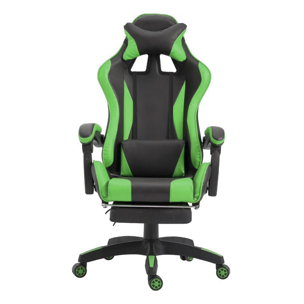 Gaming-Stuhl mit Fußstütze aus grünem Kunstleder