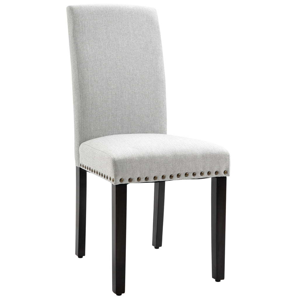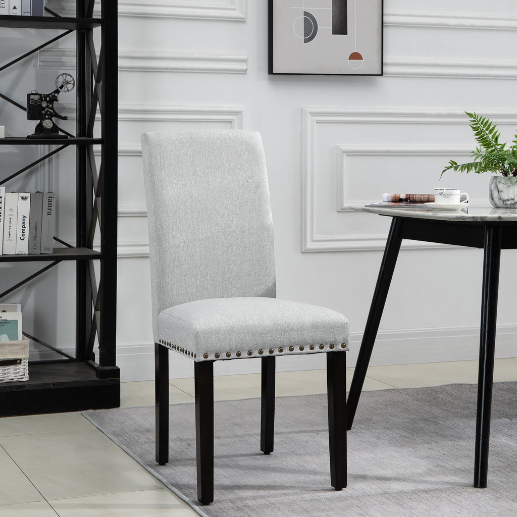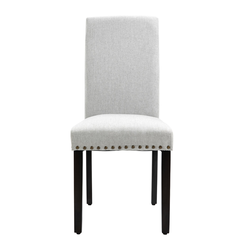 Dieser Esszimmerstuhl ist ideal für Küche, Wohnzimmer, Esszimmer usw. Klassisches Nailhead-Design passt zu den meisten Gelegenheiten. Die Kombination aus Kiefernholz, Schaumstoff und Leinen sorgt für Langlebigkeit und Komfort, ohne Mode und Stil zu beeinträchtigen. Mit Kunststofffüßen kann verhindert werden, dass der Boden beim Bewegen zerkratzt und Geräusche macht. Die Wahl dieses Stuhls bedeutet, sich für ein komfortableres Erlebnis zu entscheiden und das Leben auf hohem Niveau zu genießen.