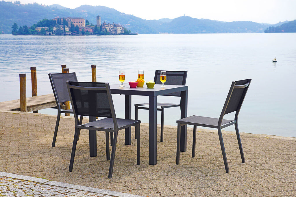 Stapelbarer Gartenstuhl 48x57x87 cm in anthrazitfarbenem Aluminium und schwarzem Elba Textilene