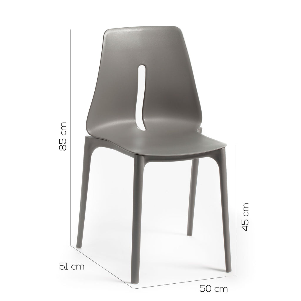 Sedia interamente realizzata in polipropilene, versatile e adatta a diverse tipologie di ambienti, disponibile in tanti colori differenti e perfetta anche per allestire gli ambienti esterni di bar, ristoranti, enoteche.
