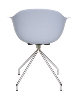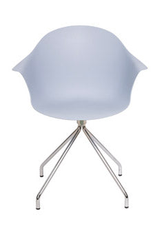 La seduta è realizzata in polipropilene da 5 mm. La sua forma è ergonomica, molto resistente e comoda. Il telaio è composto da 4 gambe realizzate in tubolare metallico cromato di 2 cm di diametro. Il prodotto è stato sottoposto a prove UNI presso SGS. La superficie può essere completamente igienizzata utilizzando una spugna o un panno in microfibra con prodotti detergenti e/o igienizzanti.