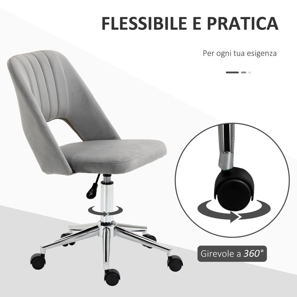 Dieser Bürostuhl ist perfekt, wenn Sie lange Stunden am Schreibtisch verbringen. Es hat ein elegantes Design und ist mit grauem Stoff in Samtoptik bezogen: perfekt, um Ihr Schlaf- oder Wohnzimmer zu beleben. Der Sitz ist drehbar, höhenverstellbar und mit Moosgummi gepolstert. Entwickelt, um Ihnen maximale Unterstützung zu bieten und Ihnen zu helfen, während Stunden am PC die richtige Körperhaltung beizubehalten.