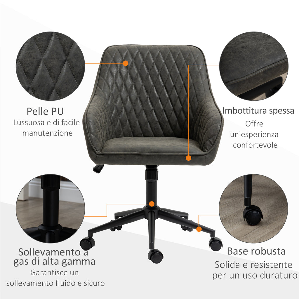 Sedia Operativa da Ufficio Reclinabile 59x60x90-100 cm Altezza Regolabile in Similpelle Grigia