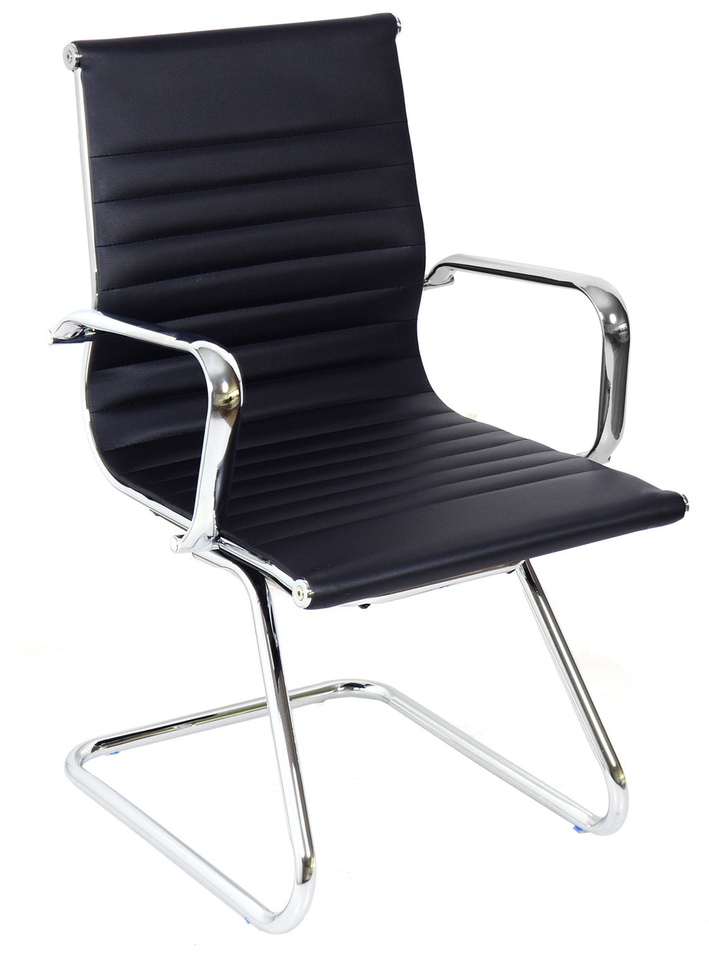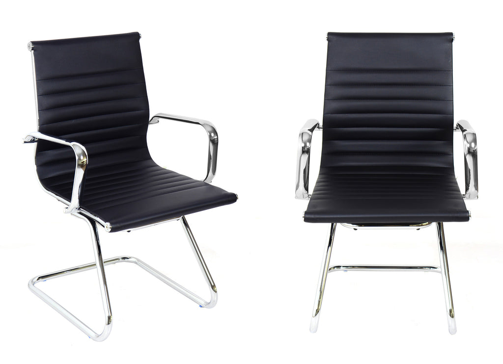 Büro-Wartestuhl aus schwarzem Akka-Kunstleder