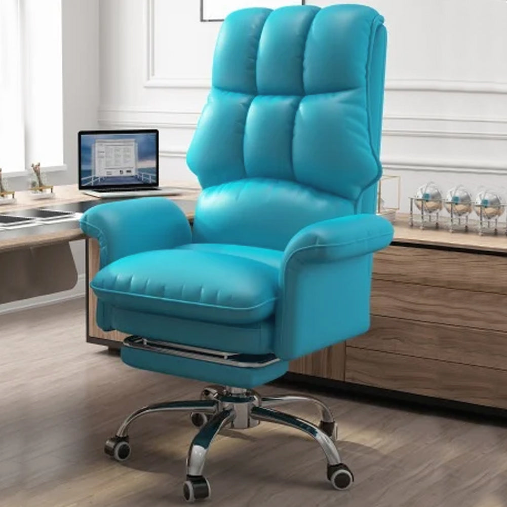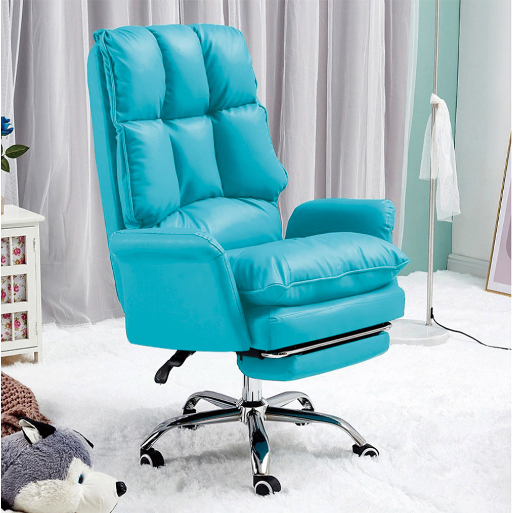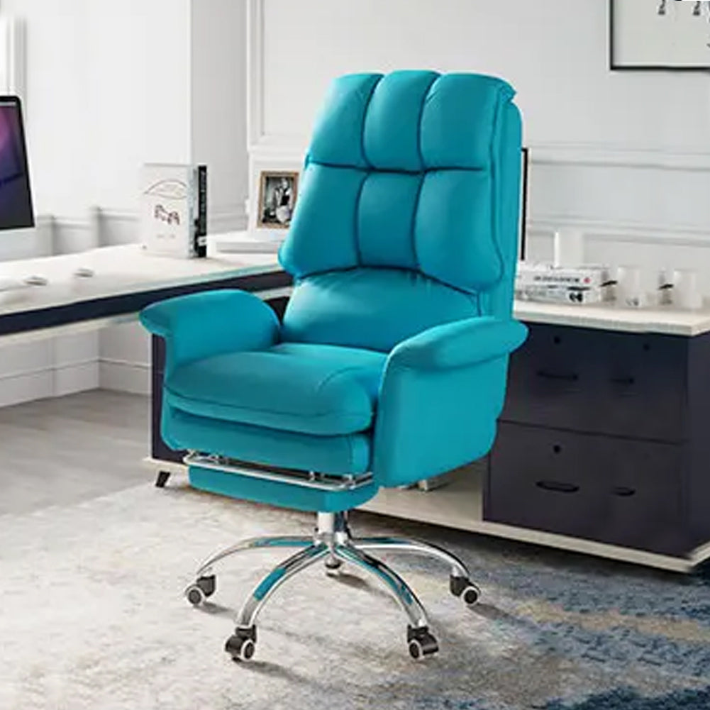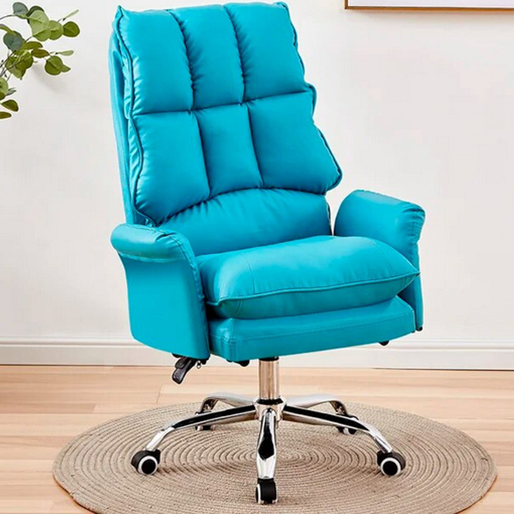 Sedia Poltrona da Ufficio Presidenziale Imbottita con Poggiapiedi Azzurro