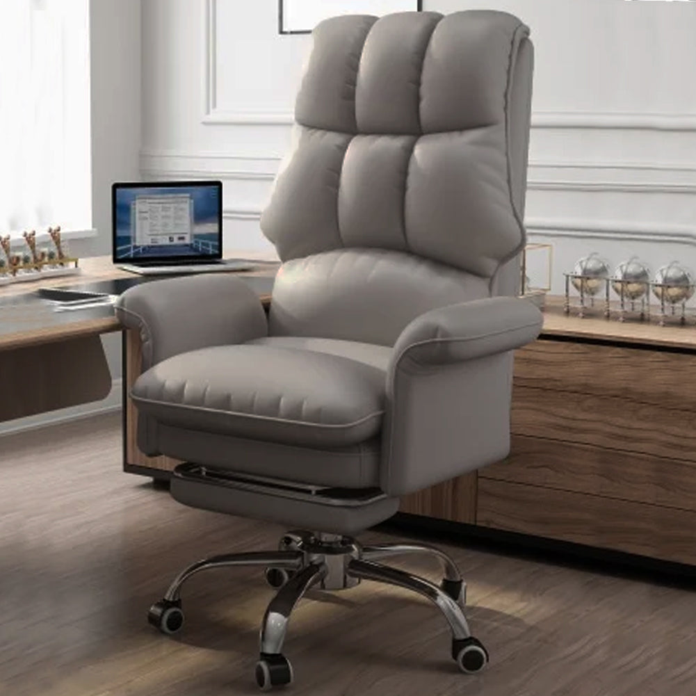 Sedia Poltrona da Ufficio Presidenziale Imbottita con Poggiapiedi Grigio