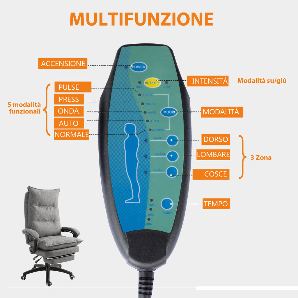 - 6 MASSAGEPUNKTE: Mit 6 leistungsstarken Vibrationsmotoren zur Entspannung von Rücken, Lendenwirbelsäule und Oberschenkeln und einer kabelgebundenen Fernbedienung zur Steuerung der Bewegung kann dieser Schreibtischstuhl Sie bei langen Arbeitsstunden im Büro oder im Büro unterstützen beim intelligenten Arbeiten