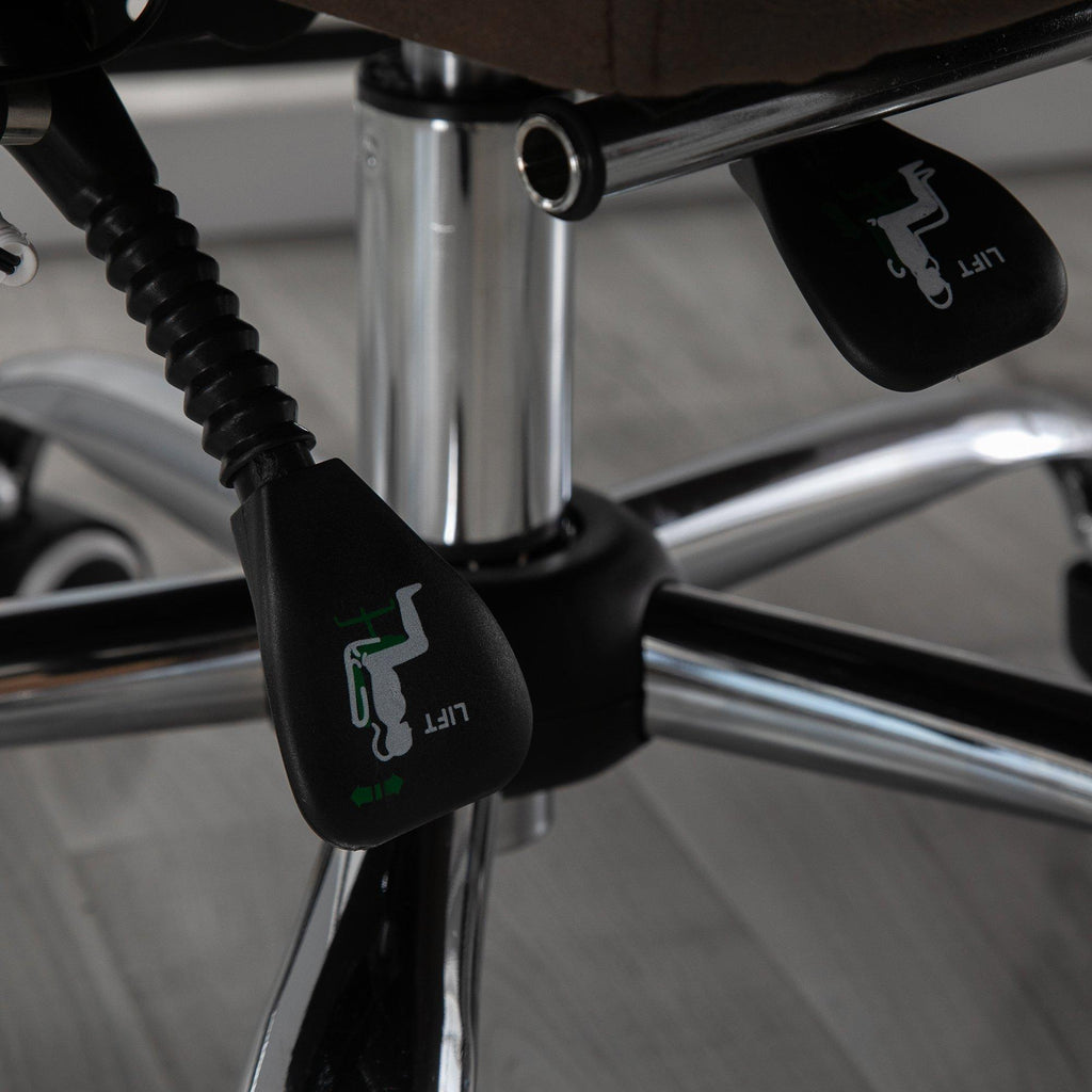 - Die verstellbare Sitzhöhe passt sich verschiedenen Sitzgewohnheiten und Schreibtischhöhen an