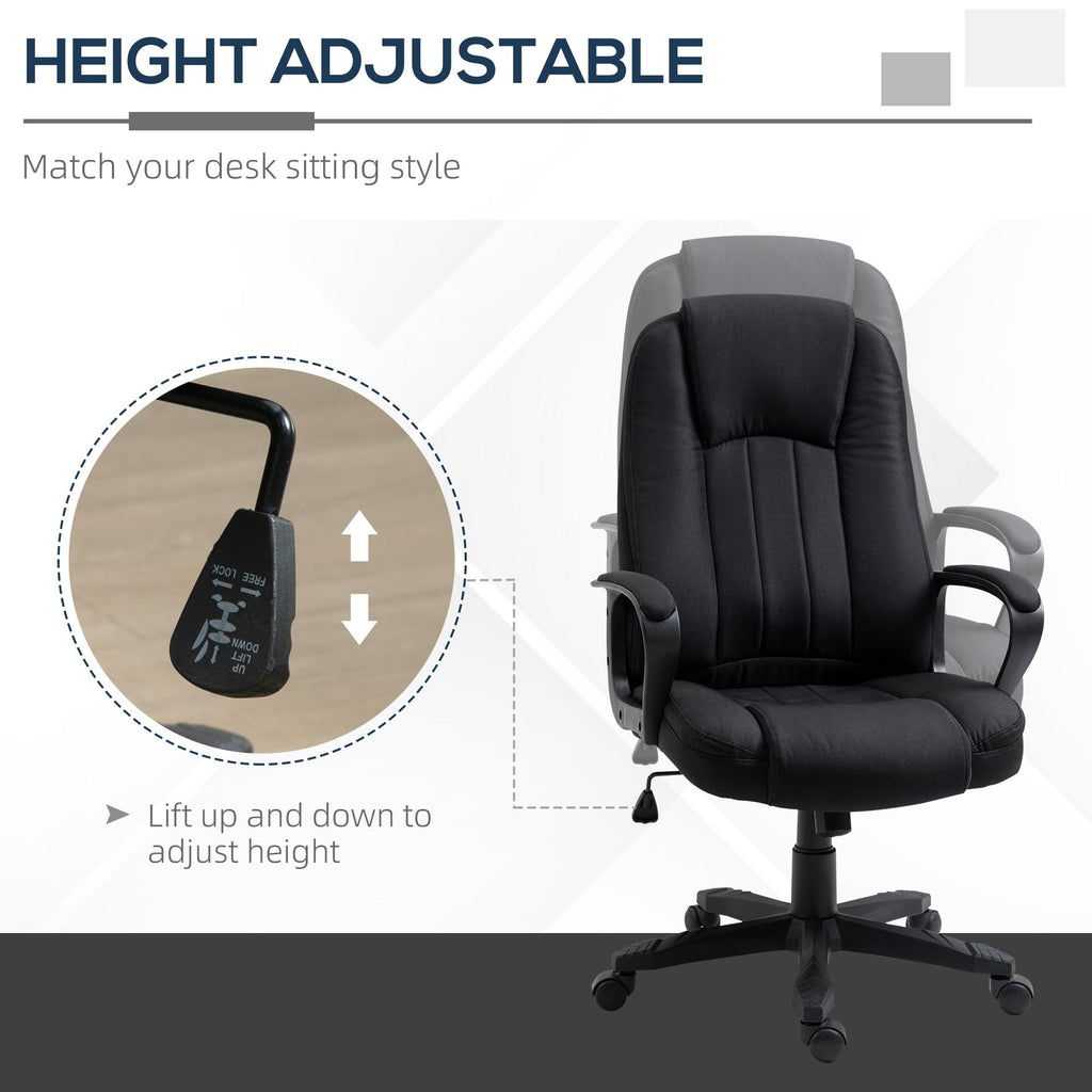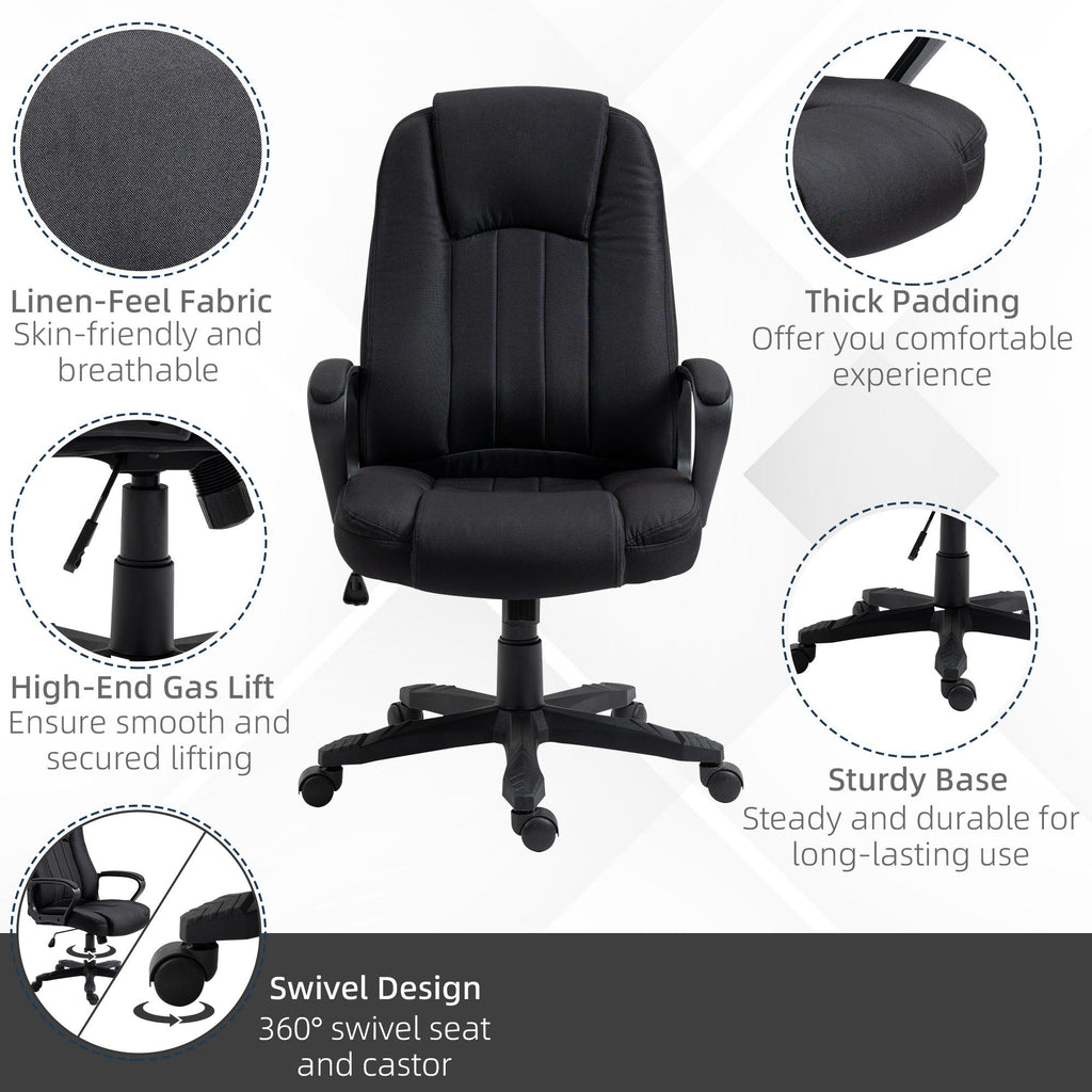 Präsidenten-Massage-Bürostuhl aus schwarzem Stoff in Leinenoptik