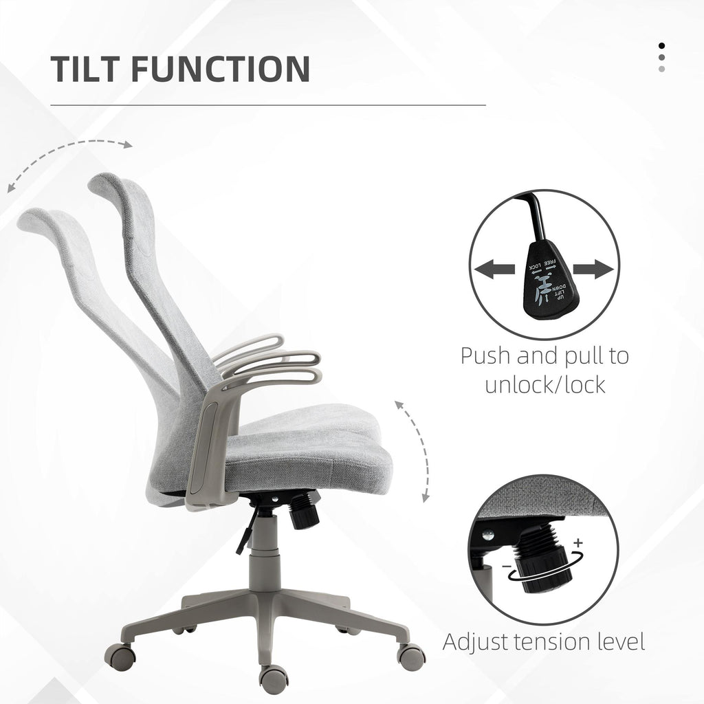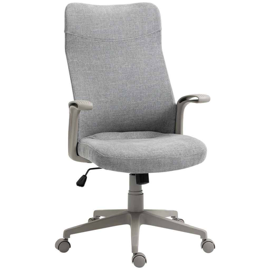 Wählen Sie unseren Bürostuhl mit hoher Rückenlehne, um bequem von zu Hause aus zu arbeiten. Sie können diesen ergonomischen Stuhl im Arbeits-, Schlaf- oder Wohnzimmer aufstellen. Dieser Schreibtischstuhl mit geschwungener Rückenlehne und gepolsterter Sitzfläche in Leinenoptik bietet hohen Komfort. Dank der Schwenkräder können Sie die Höhe des Sitzes anpassen, um ein besseres Erlebnis zu erzielen und sich schnell fortzubewegen.