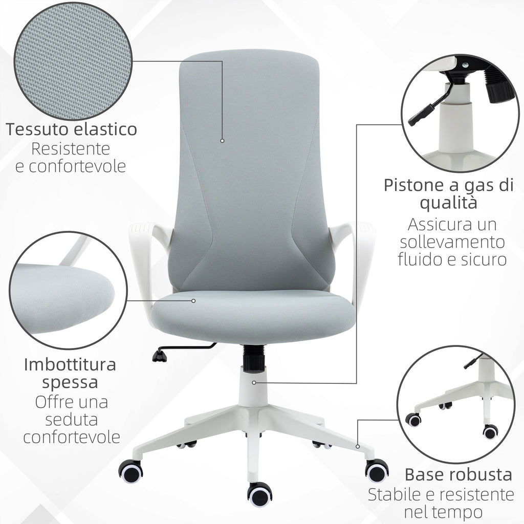 Sedia Poltrona Direzionale da Ufficio 62x56x110-119,5 cm in Tessuto Elastico Grigio Chiaro
