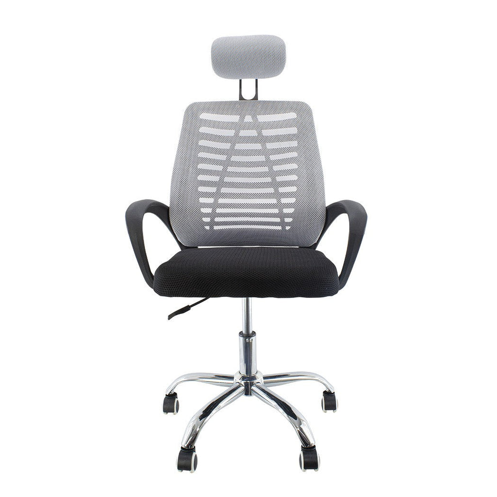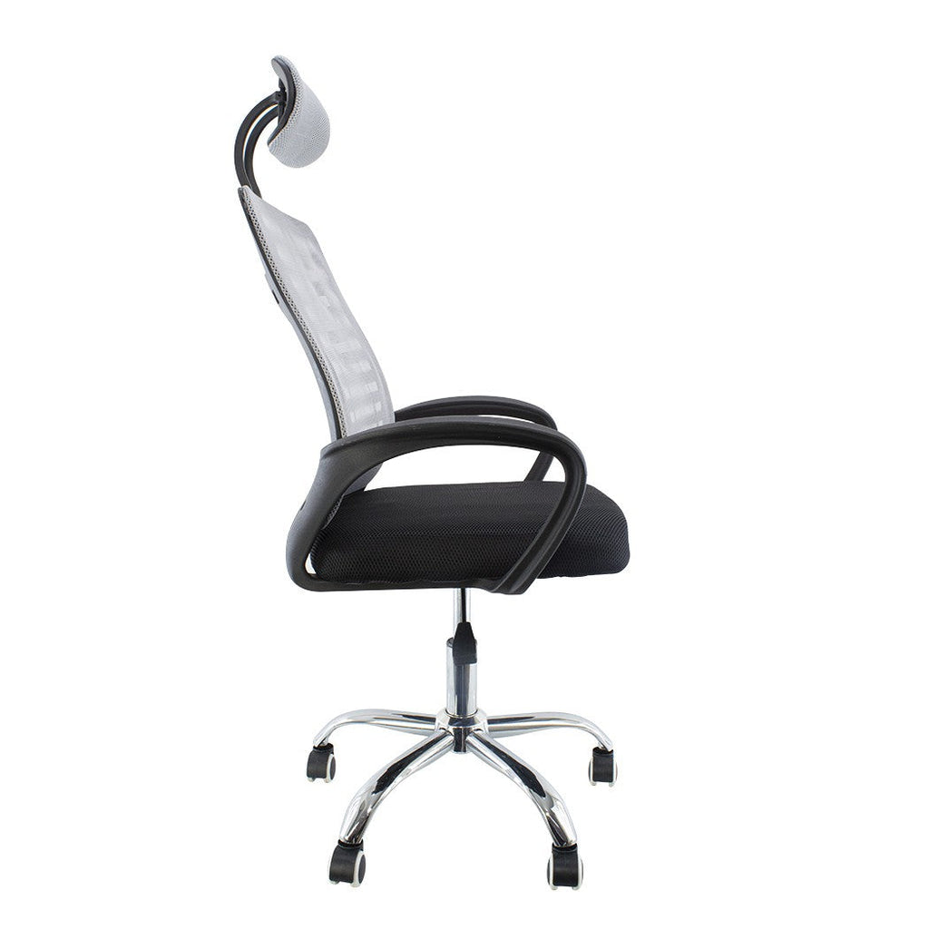 Grauer Chefsessel mit Kopfstütze und Armlehnen
