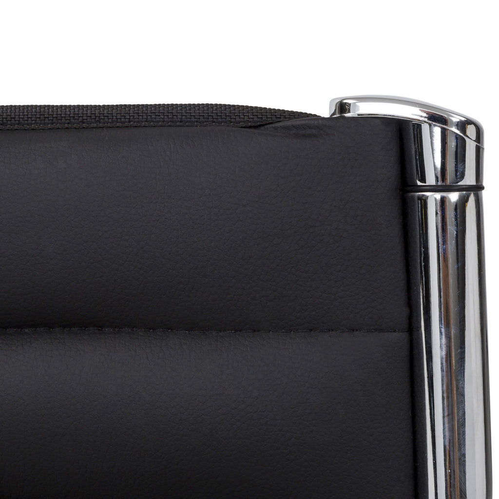 - Sitzfläche und Rückenlehne sind mit Polyurethan gepolstert und mit schwarzem, gestepptem Kunstleder bezogen