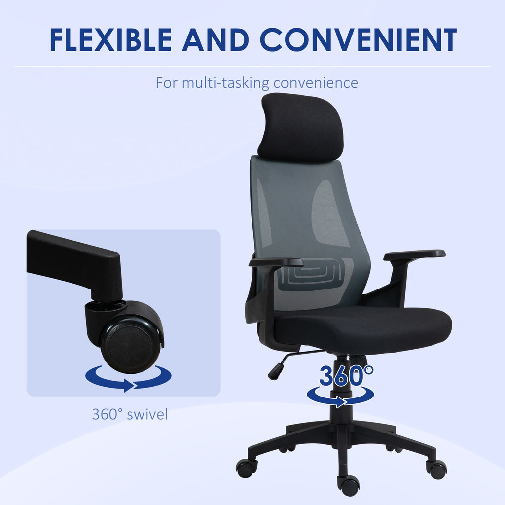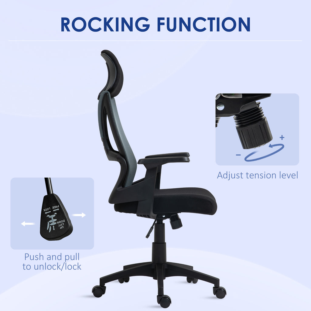 Personalizza il tuo comfort in ufficio con la sedia per scrivania. Dotata di poggiatesta regolabile in altezza e rotazione, tensione dello schienale inclinabile e seduta regolabile da 43 a 51 cm, questa sedia da ufficio si adatta alle tue esigenze. Il sedile imbottito e lo schienale in rete offrono un comfort ottimale, mentre le ruote integrate e la seduta della sedia girevole assicurano massima libertà di movimento.