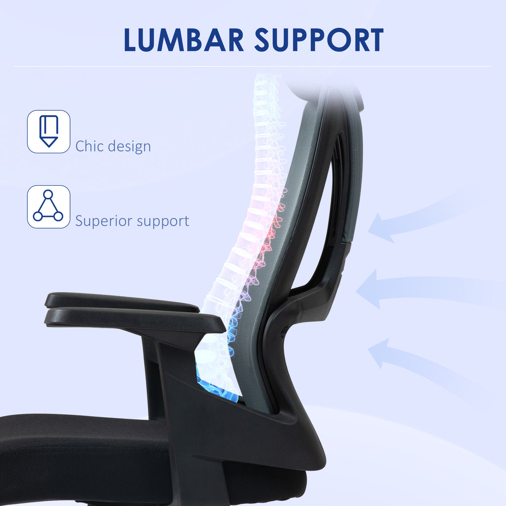 Sedia Poltrona Operativa con Supporto Lombare Altezza Regolabile Nero