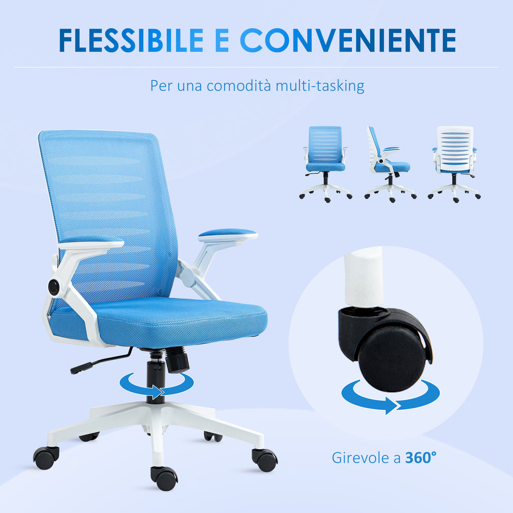 Sedia Poltrona Operativa da Ufficio 54x54x89-99 cm in Tessuto Poliestere Bianca e Azzurra