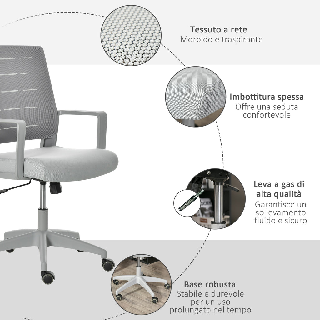 Müssen Sie lange am Schreibtisch arbeiten? Entscheiden Sie sich für den Bürostuhl, er bietet Ihnen einen bequemen Sitz und ist höhenverstellbar. Es ist ein ergonomischer Stuhl, der Ihnen optimale Unterstützung bietet, eine weiche Polsterung mit hoher Dichte und eine Rückenlehne aus Mesh-Gewebe für maximale Atmungsaktivität hat. Dank des drehbaren Sitzes und der Räder können Sie sich frei drehen und bewegen. Lass sie nicht entkommen!