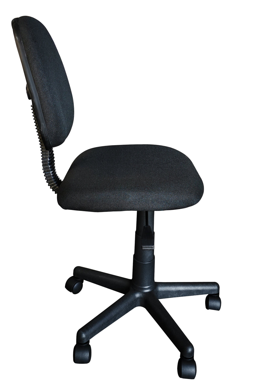 Sedia da scrivania senza braccioli dal design semplice ed essenziale, si integra bene ad altri mobili di casa o dell'ufficio. Grazie ad una leva presente nella parte inferiore della seduta è possibile regolare in modo semplice l'altezza della stessa. L'intero sedile può ruotare a 360° facilitando quindi le operazioni di lavoro. L'imbottitura della seduta e dello schienale consente di mantenere una posizione di lavoro comoda e comfortevole. La corretta postura è inoltre favorita dalla presenza di due braccioli curvi. Il rivestimento della sedia è in tessuto microforato. Le ruote in nylon consentono un rapido spostamento della sedia.