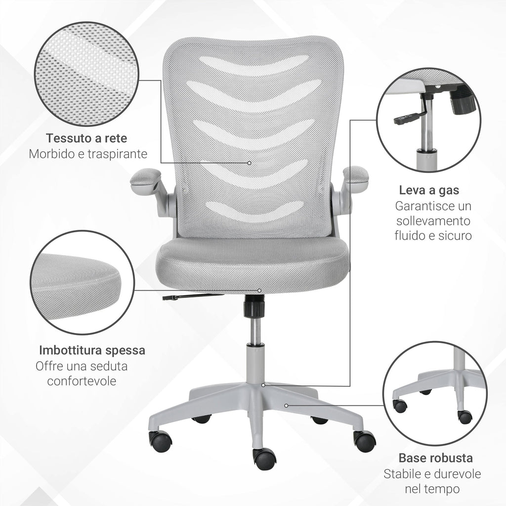 Während der langen Arbeitsstunden an Ihrem Schreibtisch zu Hause und im Büro brauchen Sie die richtige Unterstützung, deshalb ist dieser ergonomische Stuhl genau das Richtige für Sie. Die geschwungene Rückenlehne bietet eine optimale Lordosenstütze, während die atmungsaktive Rückenlehne und der gepolsterte Sitz Ihnen den Komfort bieten, den Sie suchen. Der Bürostuhl lässt sich in der Höhe verstellen und die Armlehnen hochklappen, um ihn unter dem Schreibtisch zu verstauen. Lassen Sie die Arbeitszeit mit einem bequemen und umhüllenden Sitz wie im Flug vergehen!