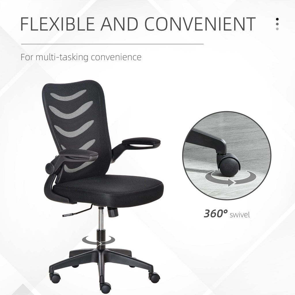 Während der langen Arbeitsstunden an Ihrem Schreibtisch zu Hause und im Büro brauchen Sie die richtige Unterstützung, deshalb ist dieser ergonomische Stuhl genau das Richtige für Sie. Die geschwungene Rückenlehne bietet eine optimale Lordosenstütze, während die atmungsaktive Rückenlehne und der gepolsterte Sitz Ihnen den Komfort bieten, den Sie suchen. Der Bürostuhl lässt sich in der Höhe verstellen und die Armlehnen hochklappen, um ihn unter dem Schreibtisch zu verstauen. Lassen Sie die Arbeitszeit mit einem bequemen und umhüllenden Sitz wie im Flug vergehen!