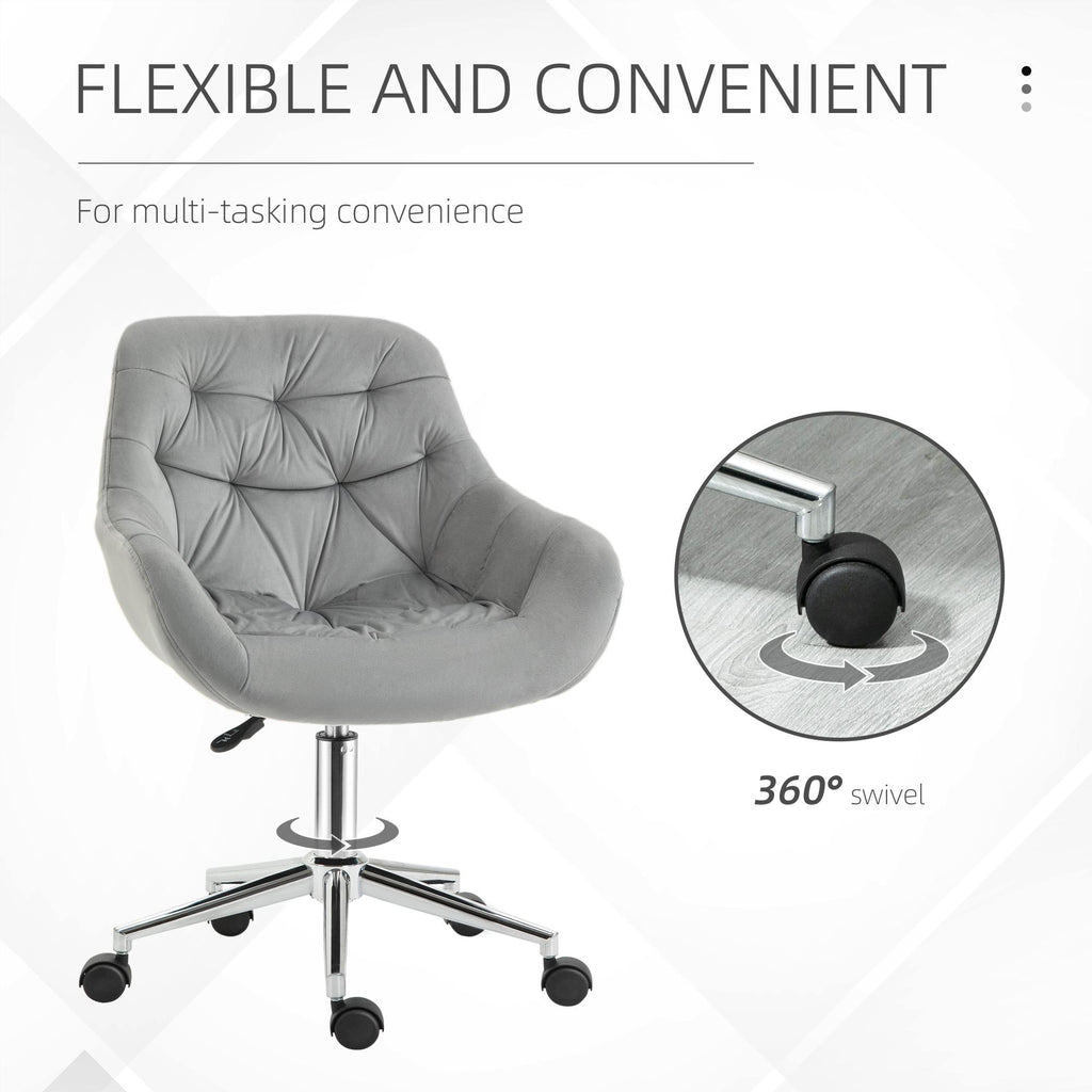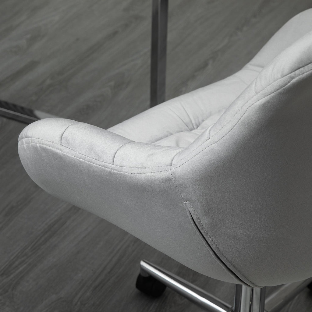 Wenn Sie Ihren Arbeitsplatz eleganter gestalten möchten, wählen Sie diesen Bürostuhl. Es hat einen weichen Bezug in Samtoptik und eine angenehme dicke Polsterung, die es Ihnen ermöglicht, während aller Arbeitsstunden bequem zu sitzen. Dank des Hebels unter dem Sitz können Sie die Höhe nach Ihren Bedürfnissen einstellen. Darüber hinaus ermöglichen Ihnen die Räder und der Sitz des Drehstuhls, sich grenzenlos zu bewegen, wo und wann Sie möchten. Verleihen Sie Ihrem Arbeitsplatz einen schicken Touch!