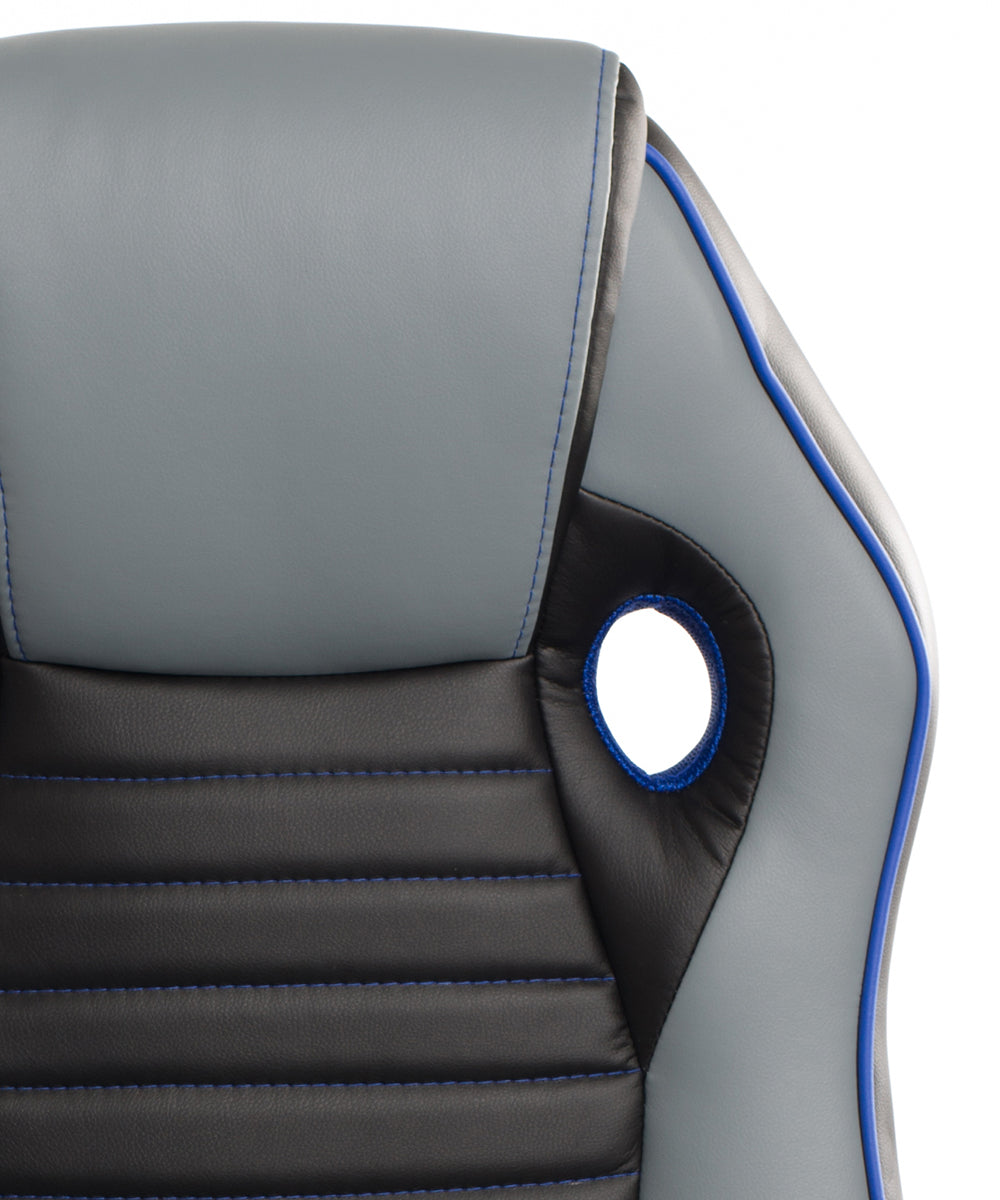 Sitzfarbe: Schwarz und Grau mit blauen Oberflächen