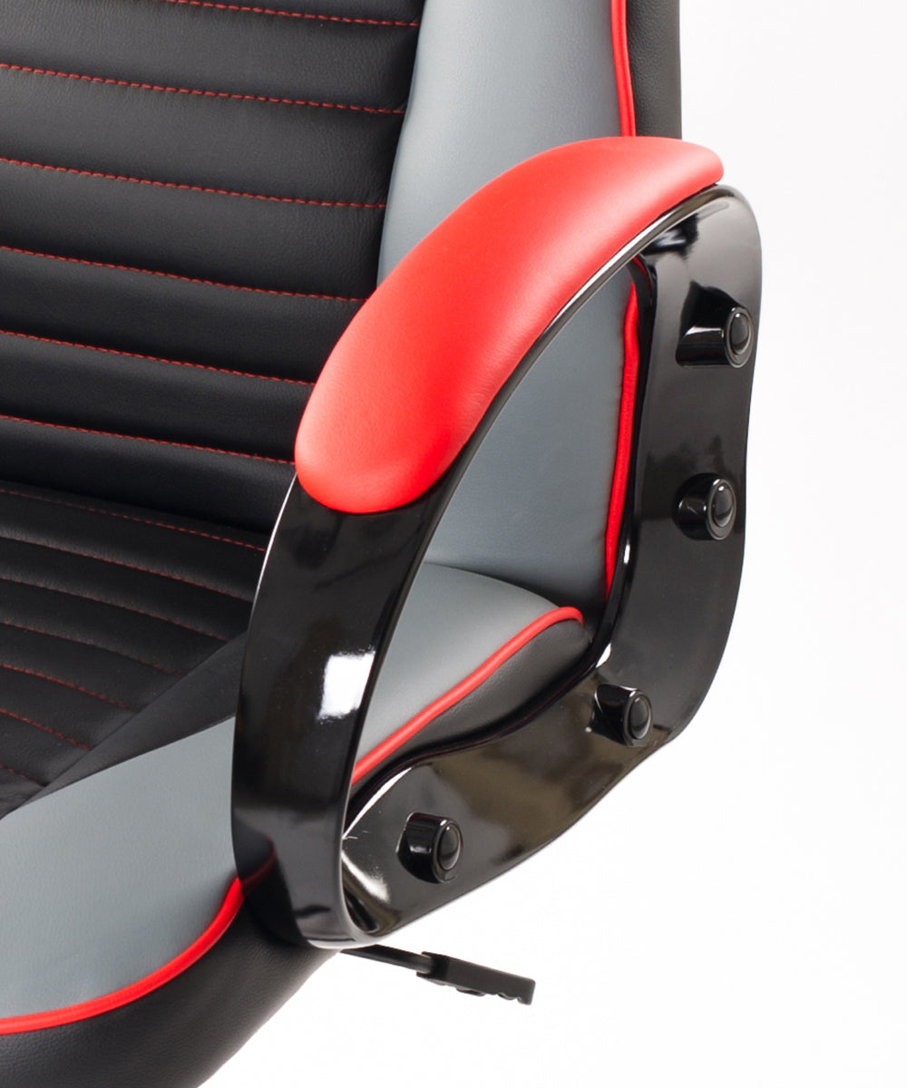 Sitzfarbe: Schwarz und Grau mit roten Oberflächen