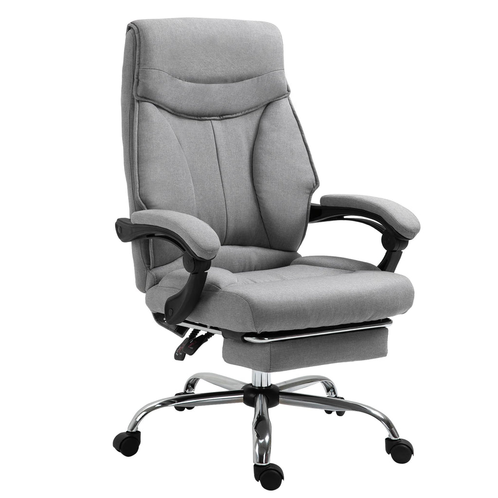 Wählen Sie diesen Bürostuhl, um stilvoll zu arbeiten. Ob im Büro, Arbeitszimmer oder zu Hause: Dank ergonomischem Design, weicher Polsterung und Stoffbespannung bietet Ihnen dieser Schreibtischstuhl den Komfort, den Sie zum Arbeiten brauchen. Bewegen Sie sich dank des drehbaren Sitzes und der Räder ohne Grenzen und machen Sie eine entspannende Pause, indem Sie die Rückenlehne zurücklehnen und die Fußstütze herausziehen. Mit diesem Bürosessel haben Sie den Komfort, den Sie verdienen!