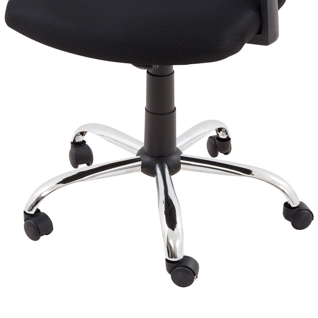 Bürosessel mit Sitz aus hochwertigem Stoff, extra hohe Rückenlehne aus atmungsaktivem Netzstoff. Sitz mit Gashöhenverstellung, Wippmechanismus. Sockel aus verchromtem Metall.