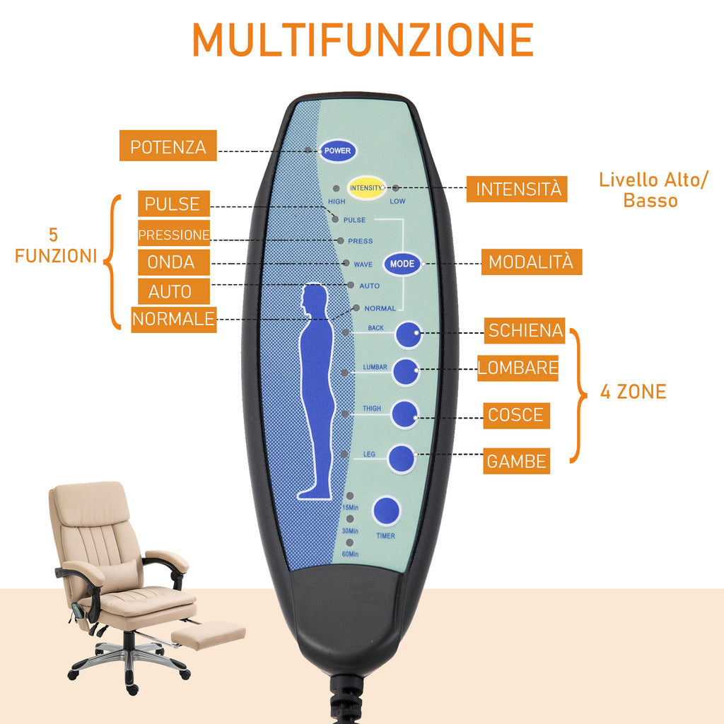 Präsidenten-Massage-Bürostuhl aus beigem Kunstleder