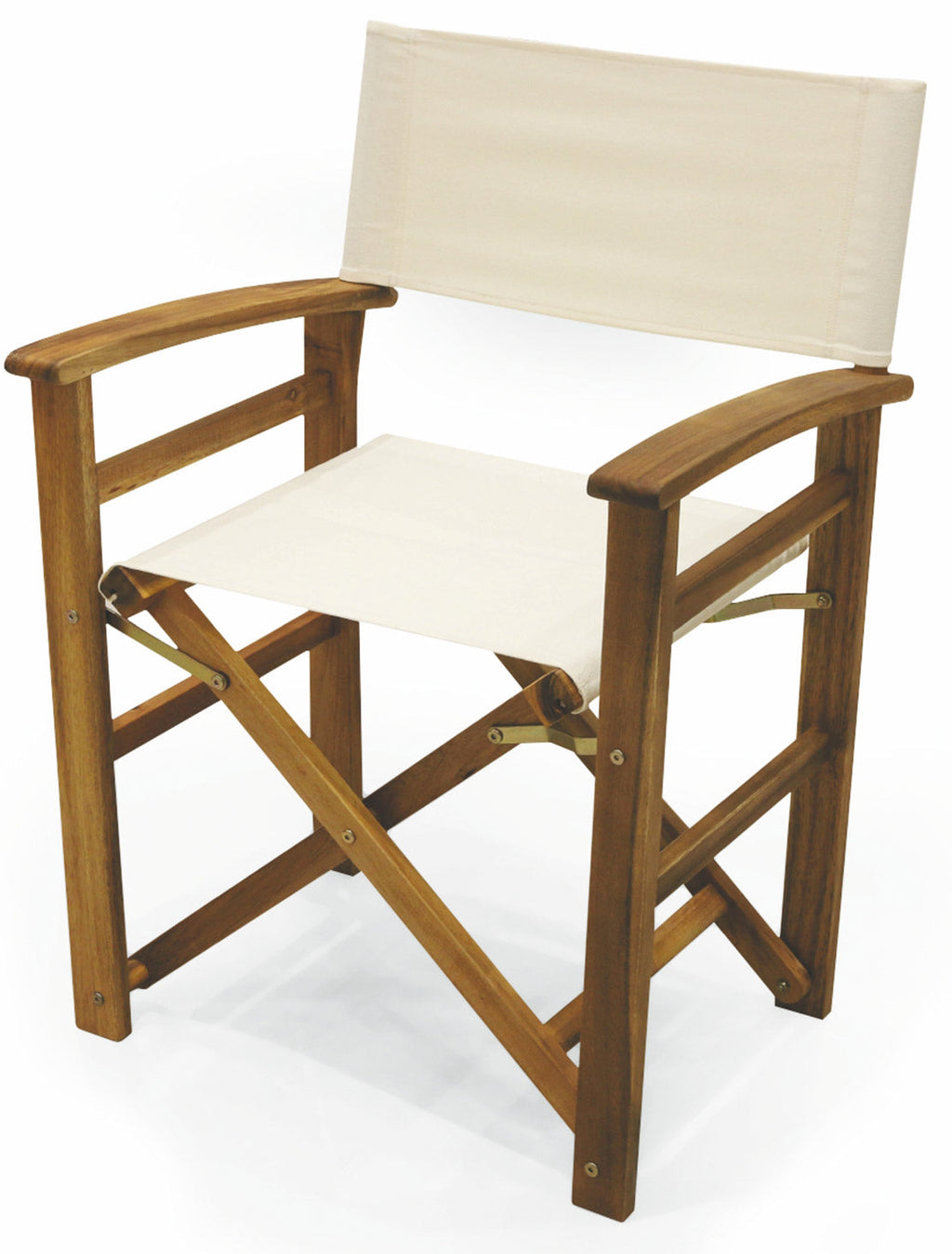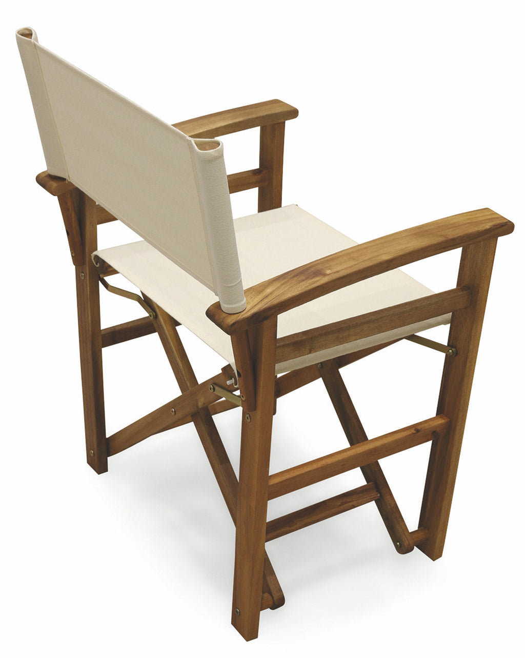 Möblierung. Der Regiestuhl erzählt ferne Inspirationen und fügt an Sommerabenden im Freien bequeme Sitzgelegenheiten hinzu.