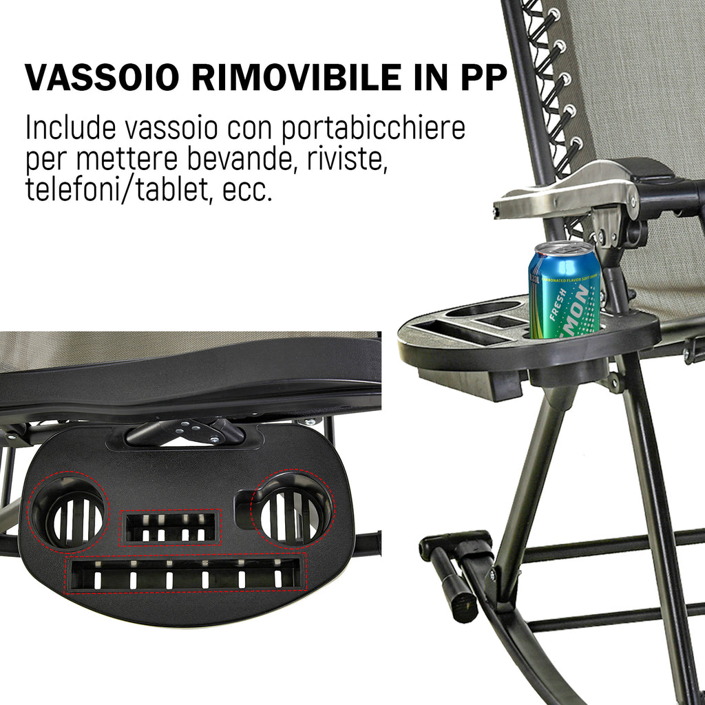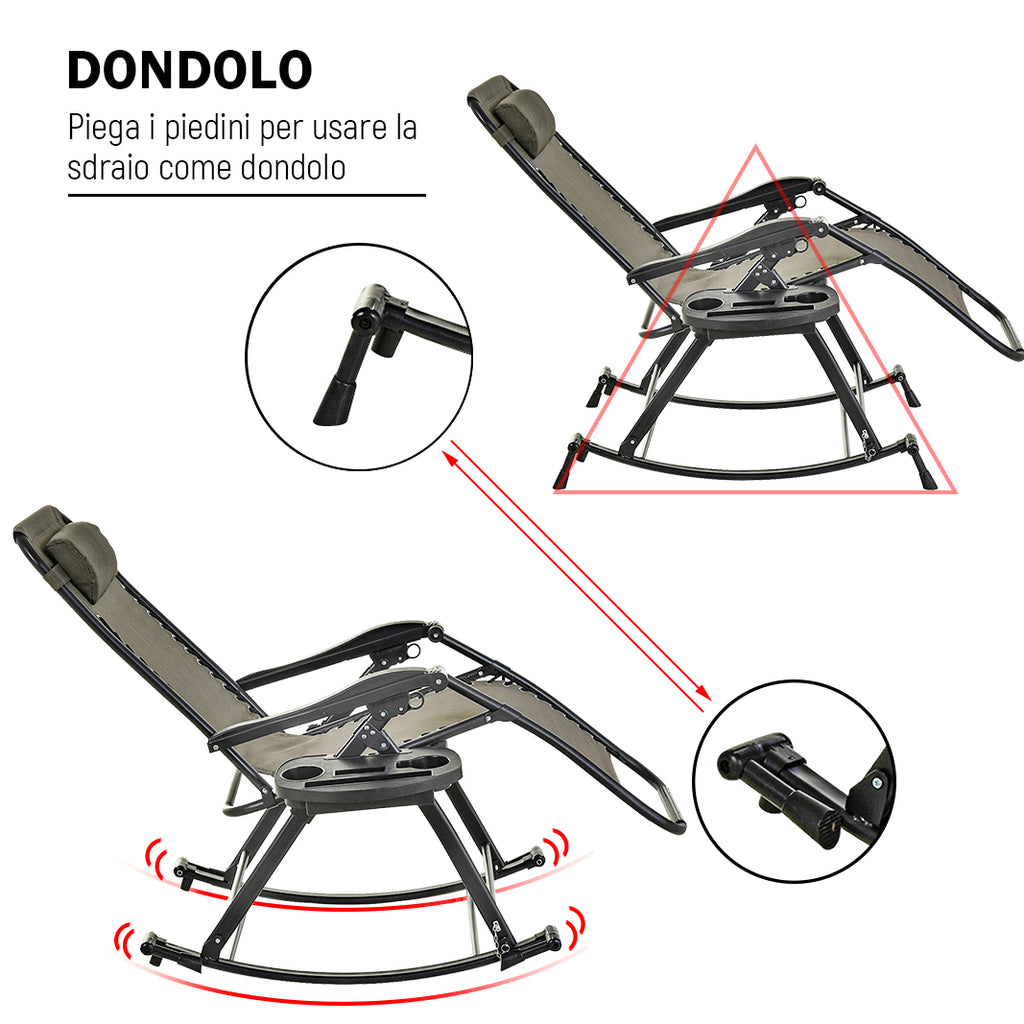 Liege-Schaukelliege mit Fußstütze und Getränkehalter Grau 120 x 67 x 102 cm
