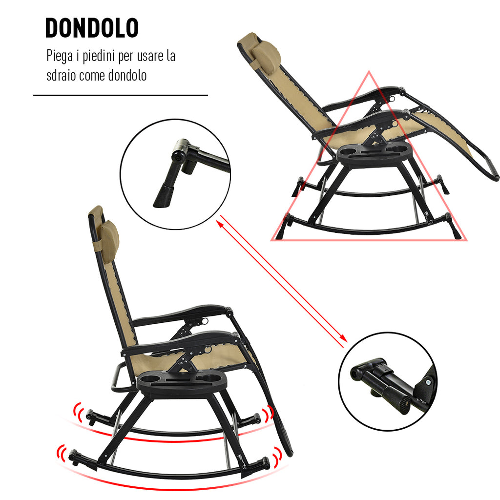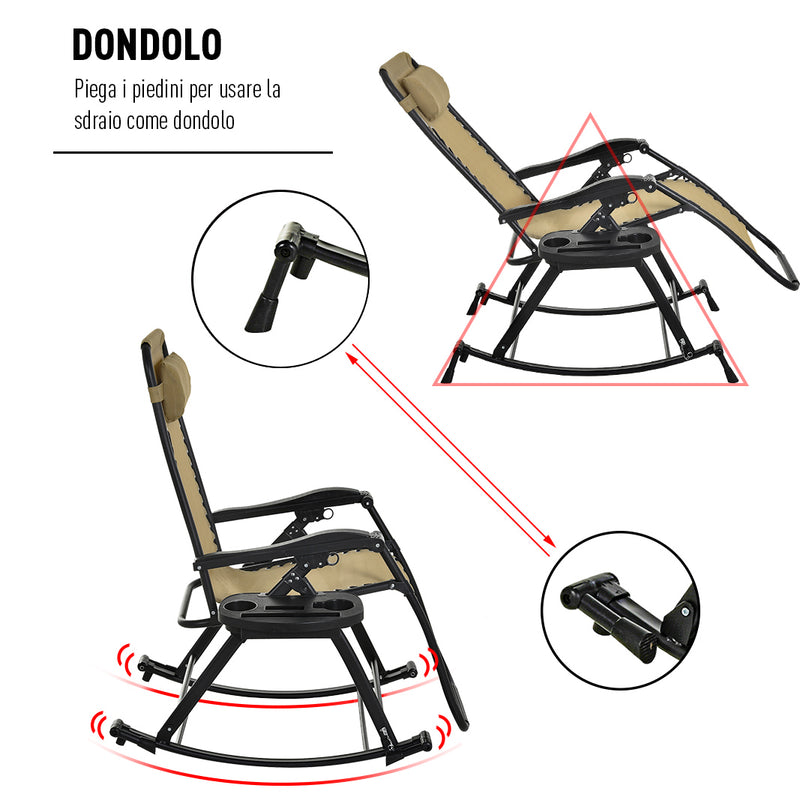 Klappbarer Liege-Schaukelstuhl aus Stahl und beigem Stoff